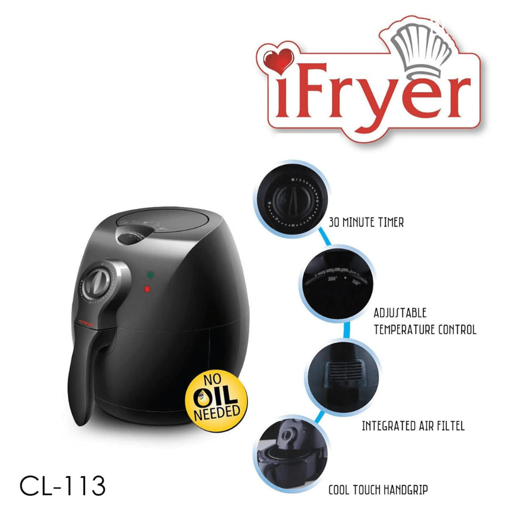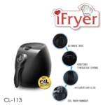 The Crownline CL-113 Air Fryer is a cutting-edge kitchen appliance designed to create delicious, hygienic fried dishes without the use of oil. With a 1-kilogram capacity and a compact black design, this air fryer is both stylish and practical. It features temperature control, a 30-minute timer, and adjustable temperature settings, allowing you to customize your cooking to perfection. The integrated air filter keeps the cooking environment clean, and the cool-touch hand grip ensures safety. This 3.5-liter capacity air fryer operates at 1500W power, providing a quick and efficient cooking experience. It comes with a minimum 1-year manufacturer warranty, offering peace of mind to users.