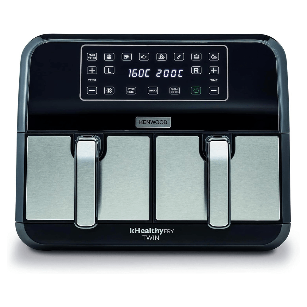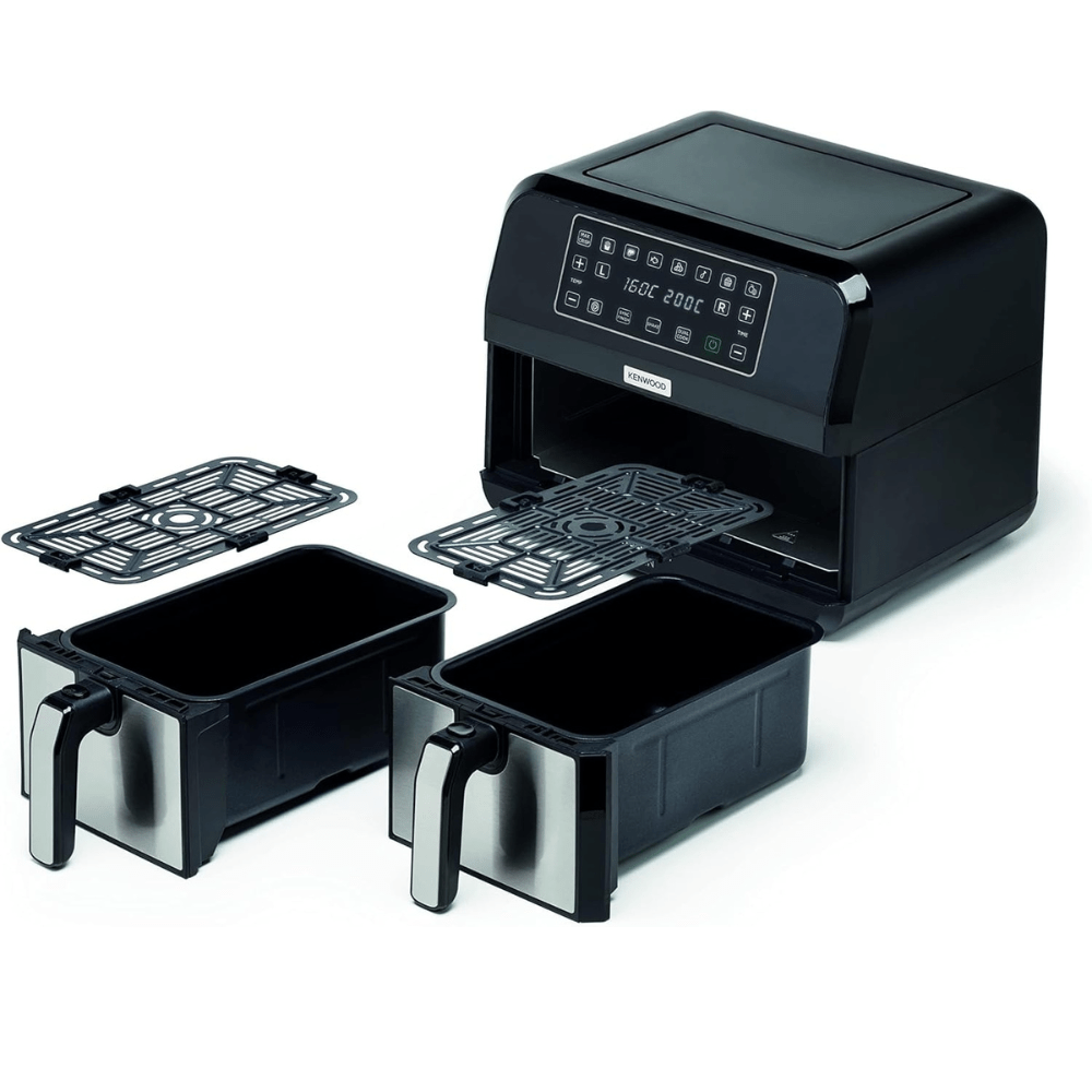 The KENWOOD Digital Twin Air Fryer HFM75.000MB in Black/Silver introduces an innovative approach to air frying, providing the ability to cook two different foods in two ways simultaneously, eliminating the need for sequential cooking.