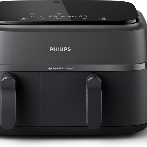 Philips Dual Basket AirFryer 3000 Series – 2750W, 9L Capacity, 2 Basket Drawers, 8 Presets Touchscreen, Black – NA350/00