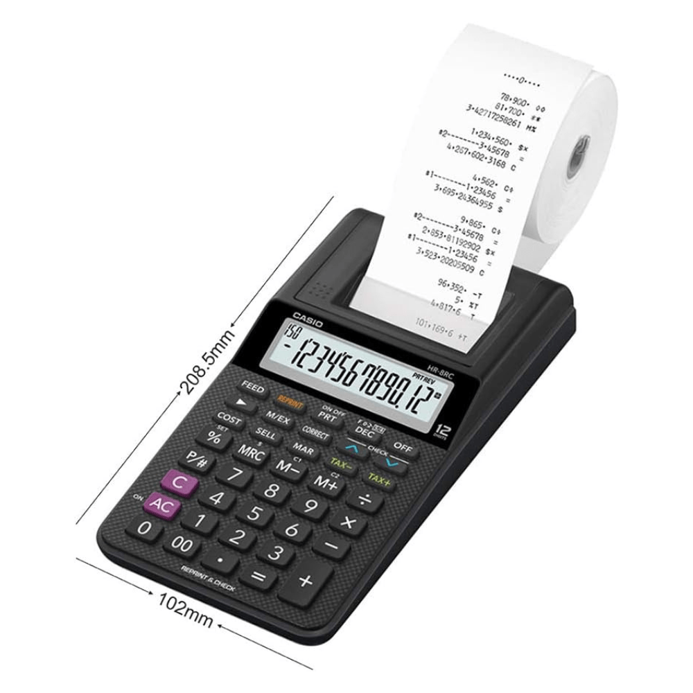 The Casio HR8RCBK Mini Printing Calculator is sleek and black and offers convenience and efficiency for various calculation needs. This compact printing calculator, designed by Casio, blends functionality and portability to simplify your arithmetic tasks. Its miniature size and black color make it an ideal addition to any workspace.