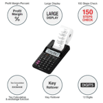 The Casio Mini Printing Casio mini calculator offers a compact yet powerful solution among the wide range of Casio printing calculators. Ideal for small businesses, home offices, and personal use, these mini calculators pack a punch with features such as: