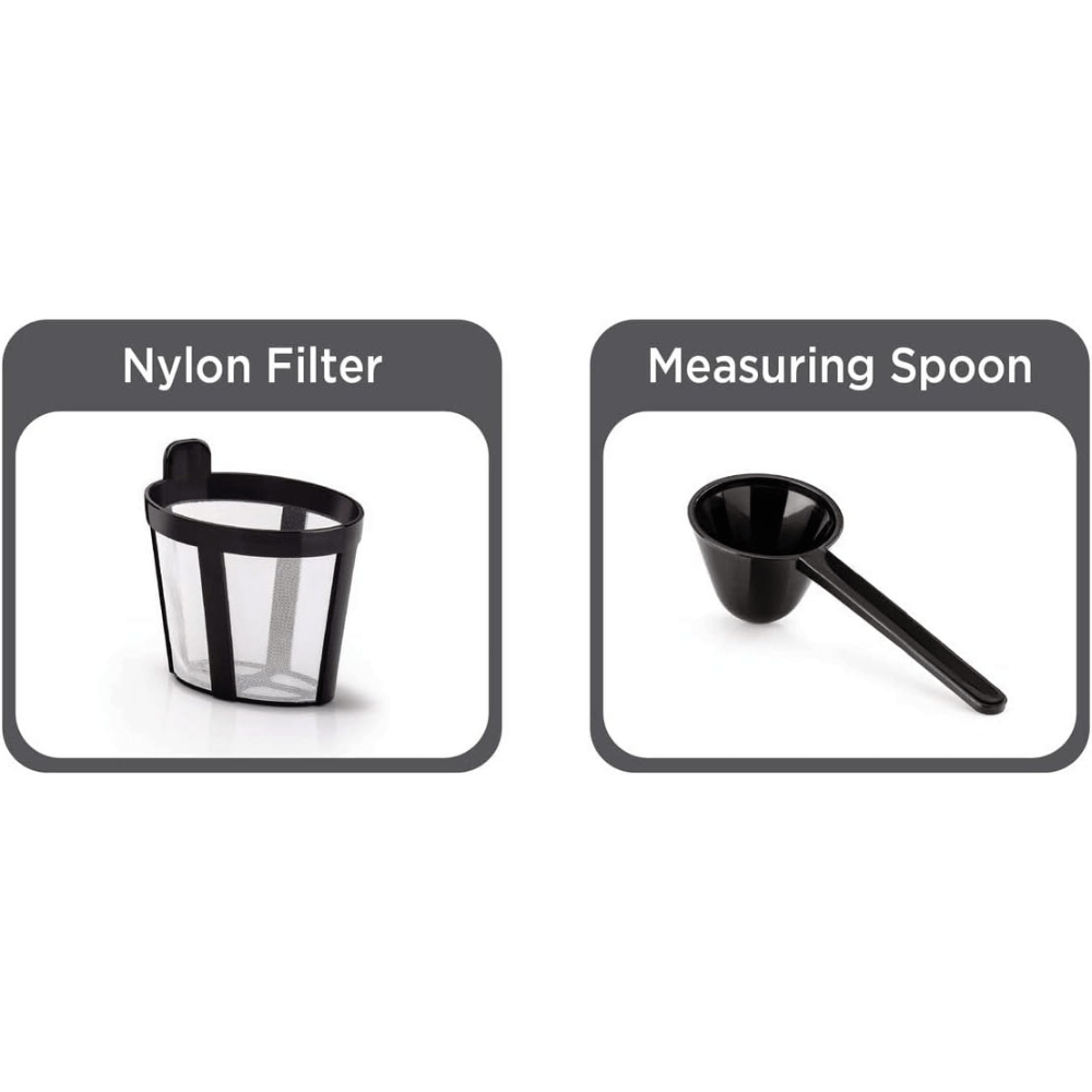 Included in the package is a measuring spoon for conveniently adding coffee powder, ensuring precise measurements for a perfect brew each time.