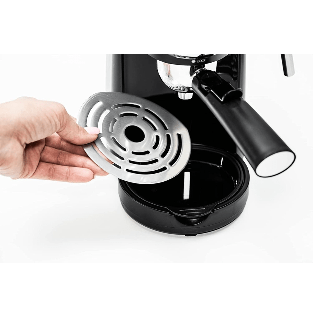 Perfect for coffee enthusiasts, this machine caters to various coffee preferences, making espresso, cappuccino, and latte preparation simple and enjoyable. The removable and washable drip tray adds to the convenience by facilitating easy cleaning, maintaining the machine’s hygiene effortlessly.