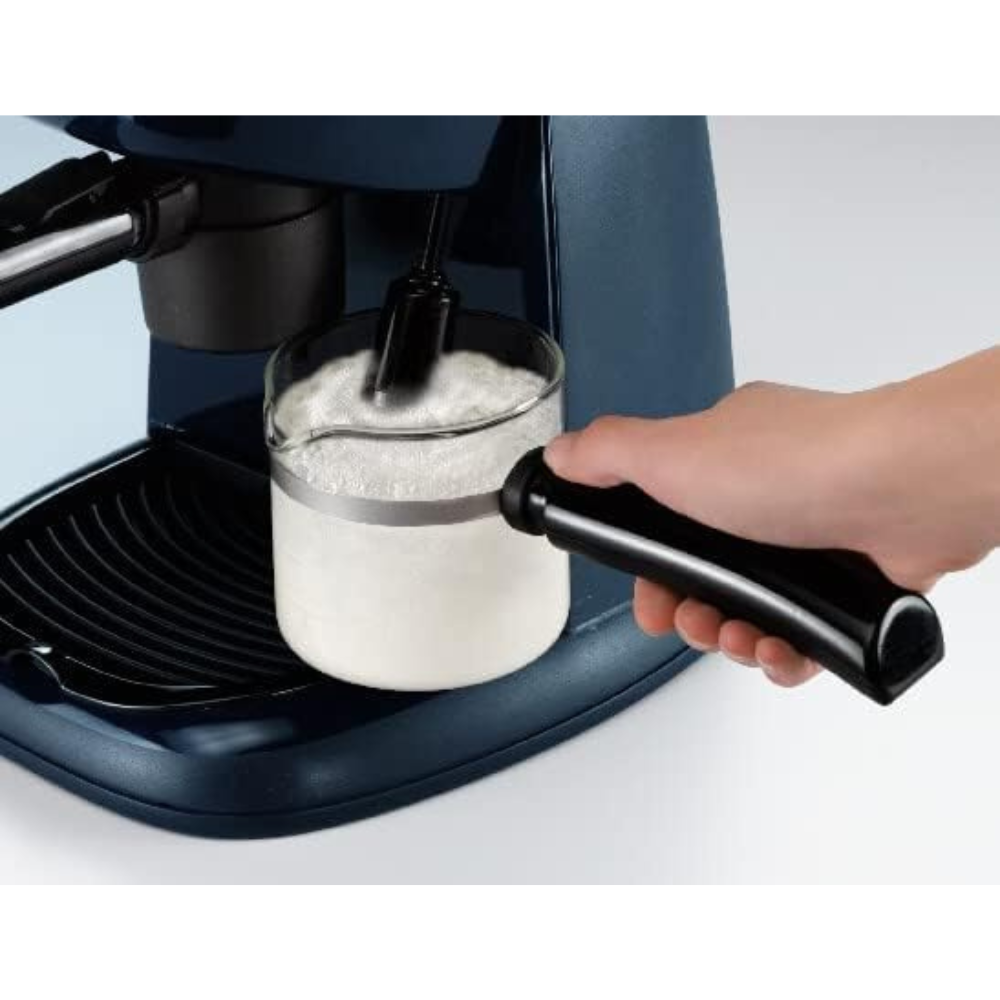 Operate the machine with ease using the simple on/off switch and indicator light, providing a hassle-free coffee-making experience. Bring the joy of barista-style beverages to your home with the De’Longhi EC5, where innovation meets flavor.