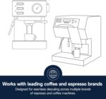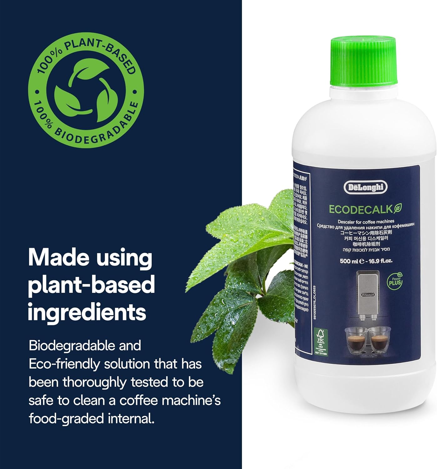 Used regularly, the De’Longhi EcoDecalk machine descaler liquid significantly reduces the likelihood of premature breakdown from scale build-up, increases the energy efficiency, and improves the flavor and crema. Our descaler made with 100% lactic acid and is suitable for all espresso/coffee machines. The liquid is easier and quicker to use than coffee machine descaling tablets, and will keep your machine running smoothly so you can always enjoy your favorite beverages.