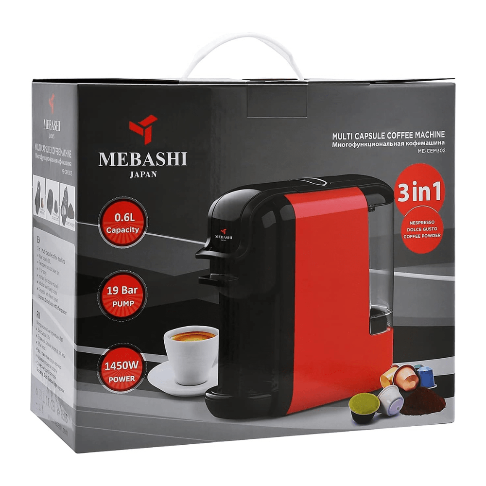 The Zypermart Living Mindfully Multi Capsule Coffee Machine by Mebashi Japan offers versatility with its 3-in-1 compatibility for Nespresso, Dolce Gusto, and coffee powder. With a 0.6-liter capacity, compact design, high-pressure pump system, and quick heat-up technology, it ensures convenience and exceptional coffee quality at your fingertips. Made by Mebashi, a renowned Japanese brand dedicated to high-quality and innovative home solutions.