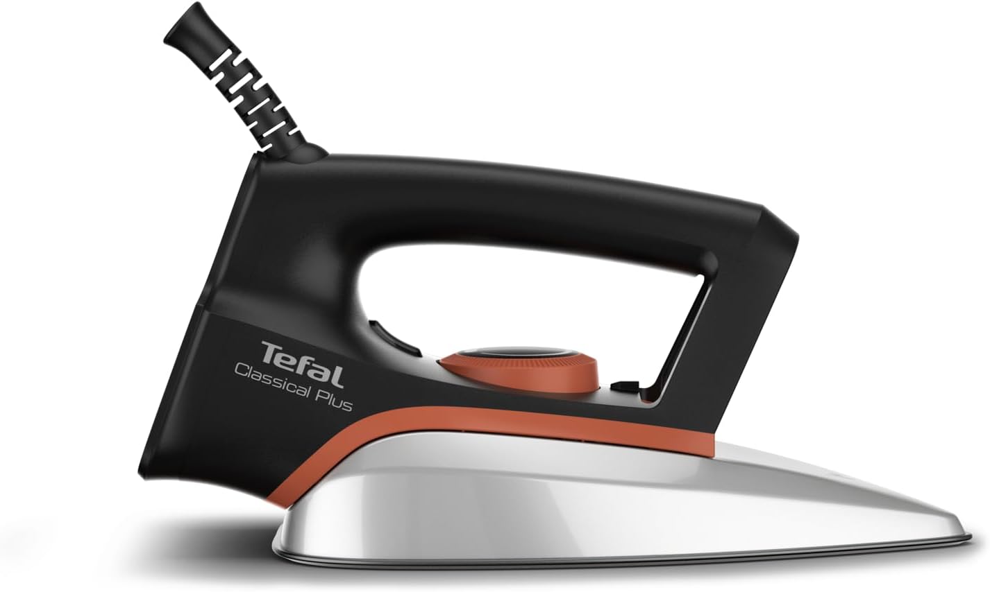 The Tefal Classical Plus Dry Iron was designed to make home garment care effortless. Discover all the advantages of a dry iron, with 1200 W of power for a fast heat-up and a smooth-gliding soleplate. Three temperatures cover all your garment care needs, with convenient features to round off the package: a lightweight design that’s only 604 g in hand, a long 1.8 m cord, ergonomic 360° swivel movement and much more.