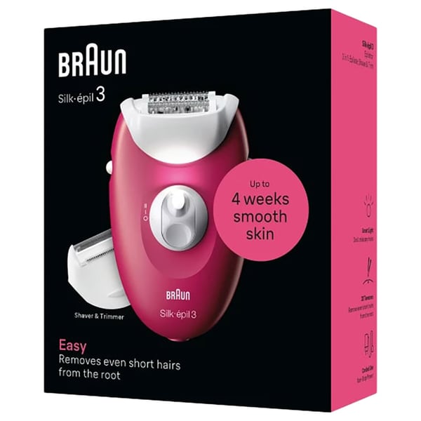 The Braun Silk-épil 3 SE 3202 Epilator offers an easy and efficient way to achieve long-lasting smooth skin. With thoughtful features like massage rollers and a smart light, this epilator ensures precision and comfort during use.