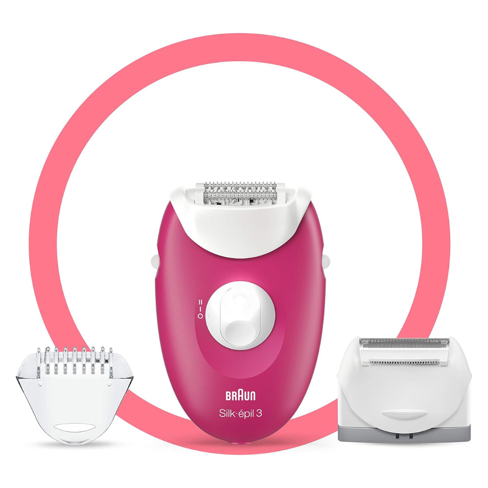 Experience efficient and long-lasting hair removal with the Braun Silk Epil 3 410 Epilator, a powerful and user-friendly grooming solution in Raspberry Pink and White. Crafted by the trusted brand Braun, this epilator offers a range of features designed to make your hair removal routine smooth and effective.