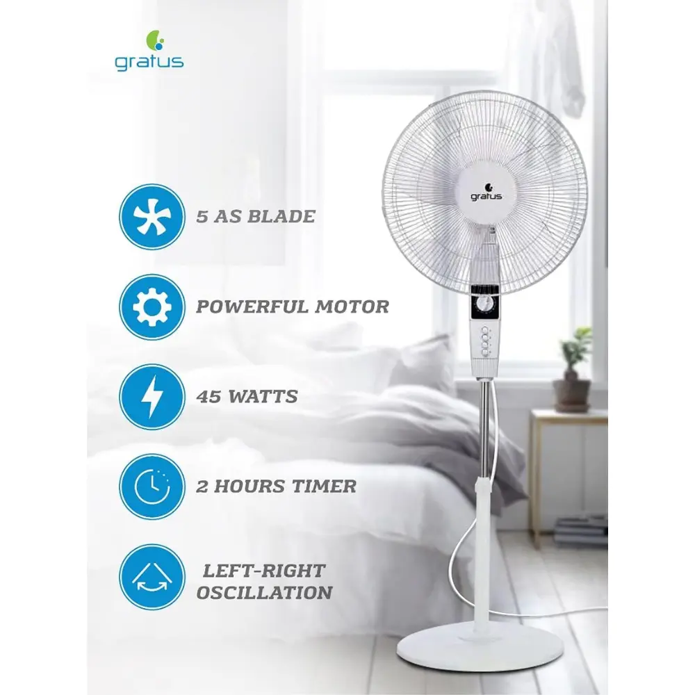 The Gratus Pedestal Fan comes with a 2-hour timer function, allowing you to customize the fan’s operation duration according to your preferences. This energy-efficient feature adds a touch of automation to your cooling experience.