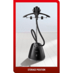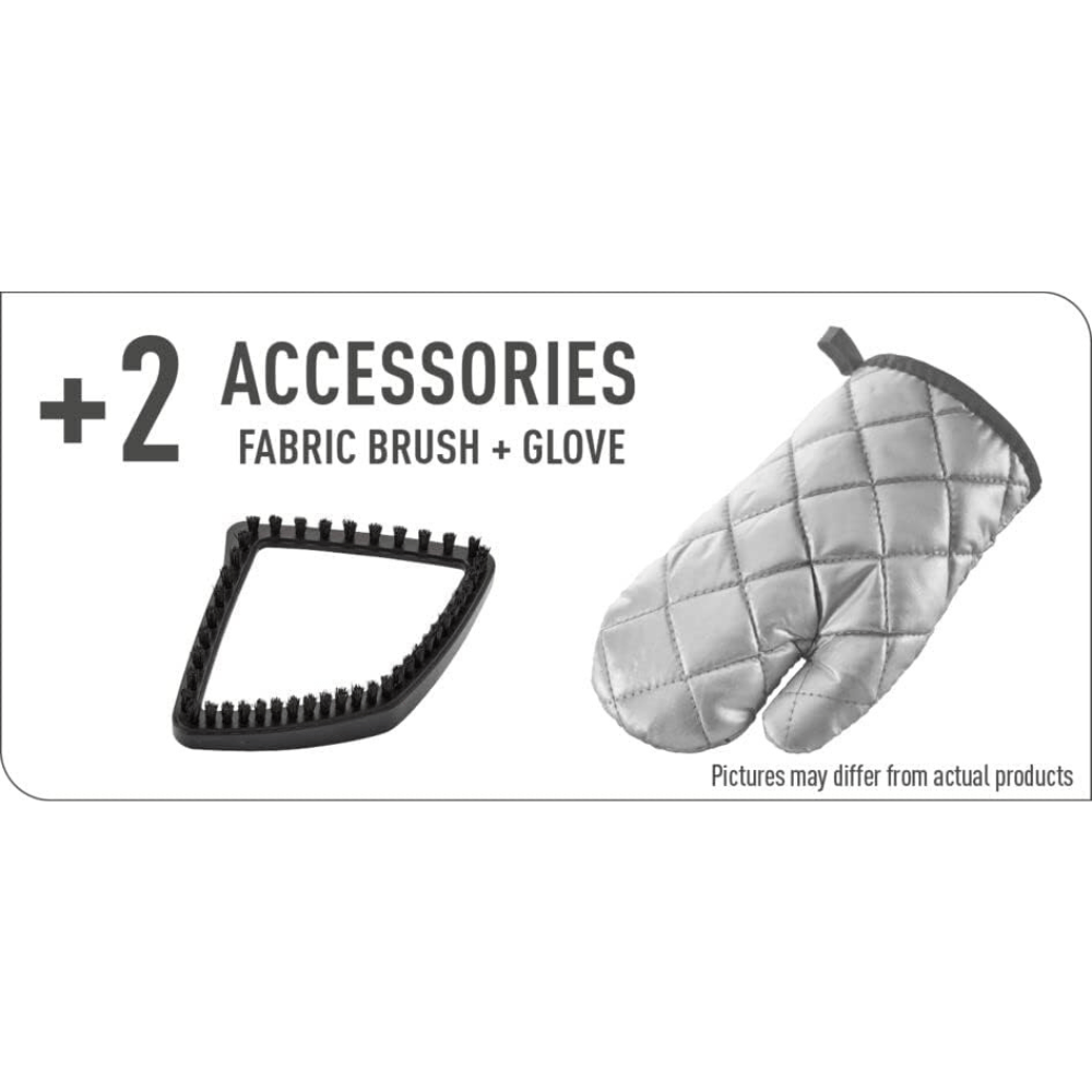 Equipped with two levels of steam, this steamer accommodates delicate as well as thicker fabrics, providing versatility in garment care. Included with this steamer are convenient accessories, such as a fabric brush suitable for heavier fabrics and a glove for added protection.
