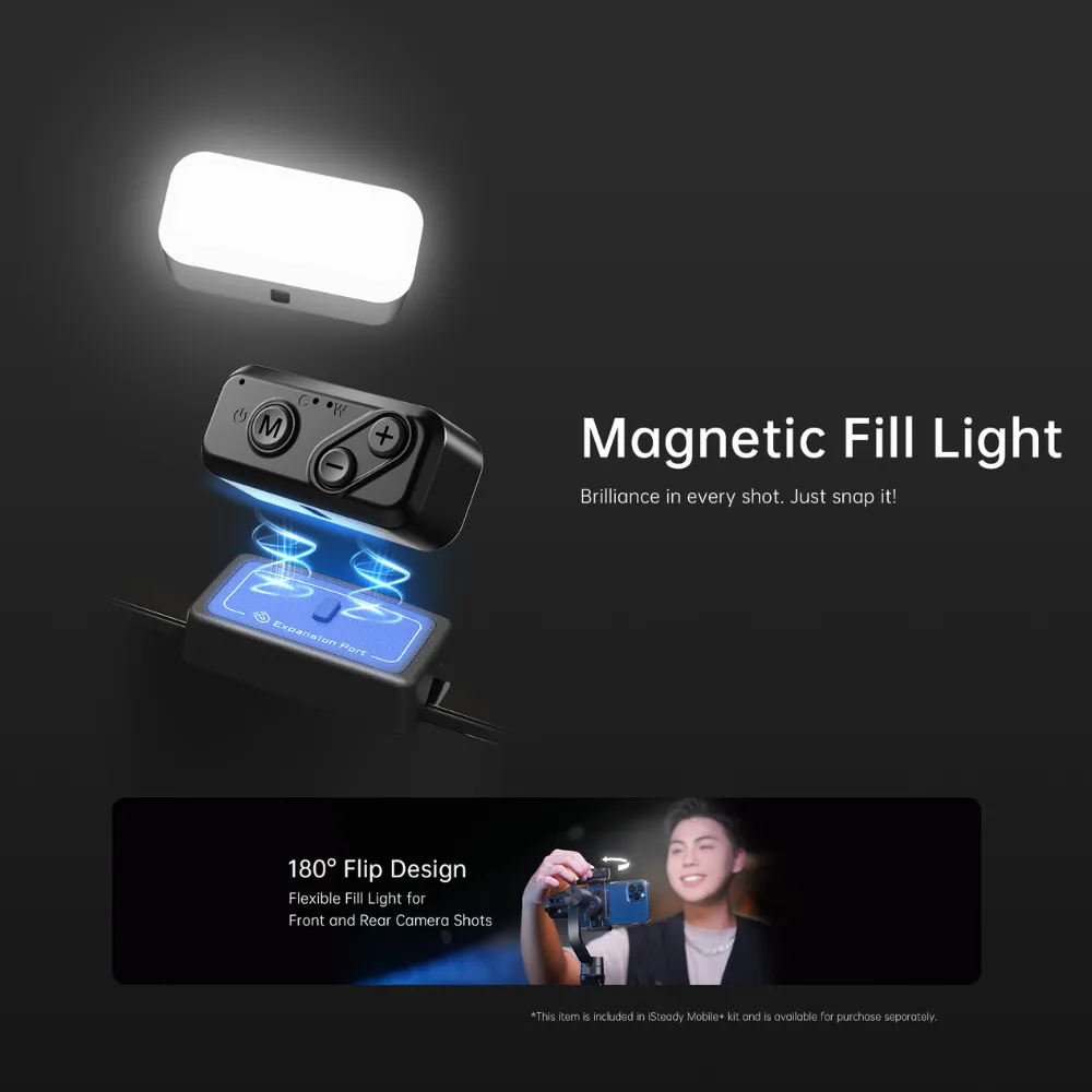 Featuring an adjustable Magnetic Fill Light with three color temperature settings and ten brightness levels, the iSteady Mobile Plus ensures optimal lighting for every shot, even in low-light environments. The fill light, magnetically connected to the phone stabilizer, enhances your selfies and photography, with a battery life of up to 60 minutes on a single charge.