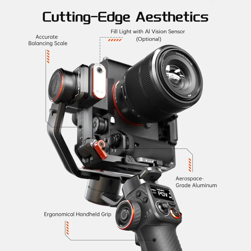 Unleash your creativity with the hohem iSteady MT2 Kit, a powerful 3-Axis Camera Stabilizer with a 1.2kg payload capacity. The Magnetic Fill Light and AI Tracker offer independent AI tracking, while the 360-degree panning and customizable gestures provide limitless creative possibilities. Compatible with a range of devices, this stabilizer features multiple expansion ports for accessories like fill lights and microphones, making it the perfect tool for dynamic and professional-quality filming.