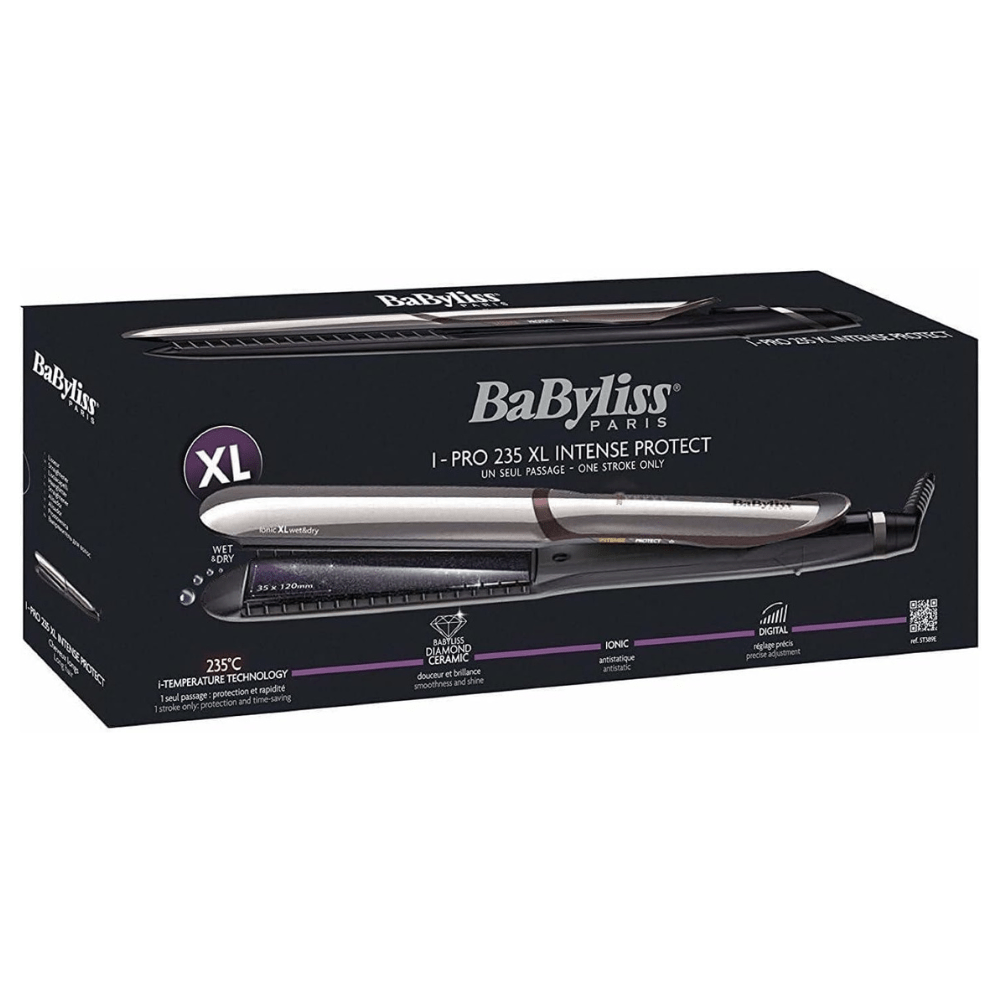 Discover the professional-grade Babyliss Paris ST389E Hair Straightener I-Pro 235 XL Intense Protect, designed to provide unparalleled straightening results. Crafted by Babyliss, a leader in hair care technology, this hair straightener is engineered to offer exceptional performance, combining innovation and efficiency.
