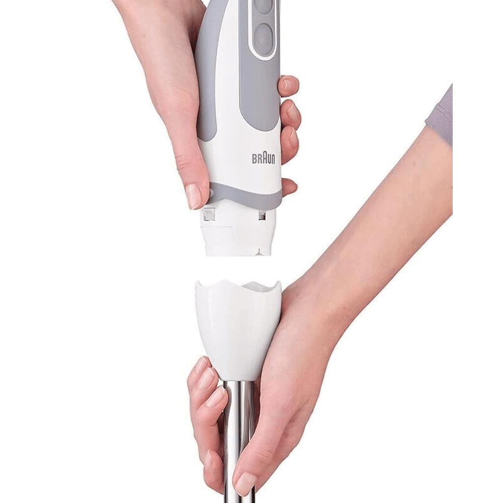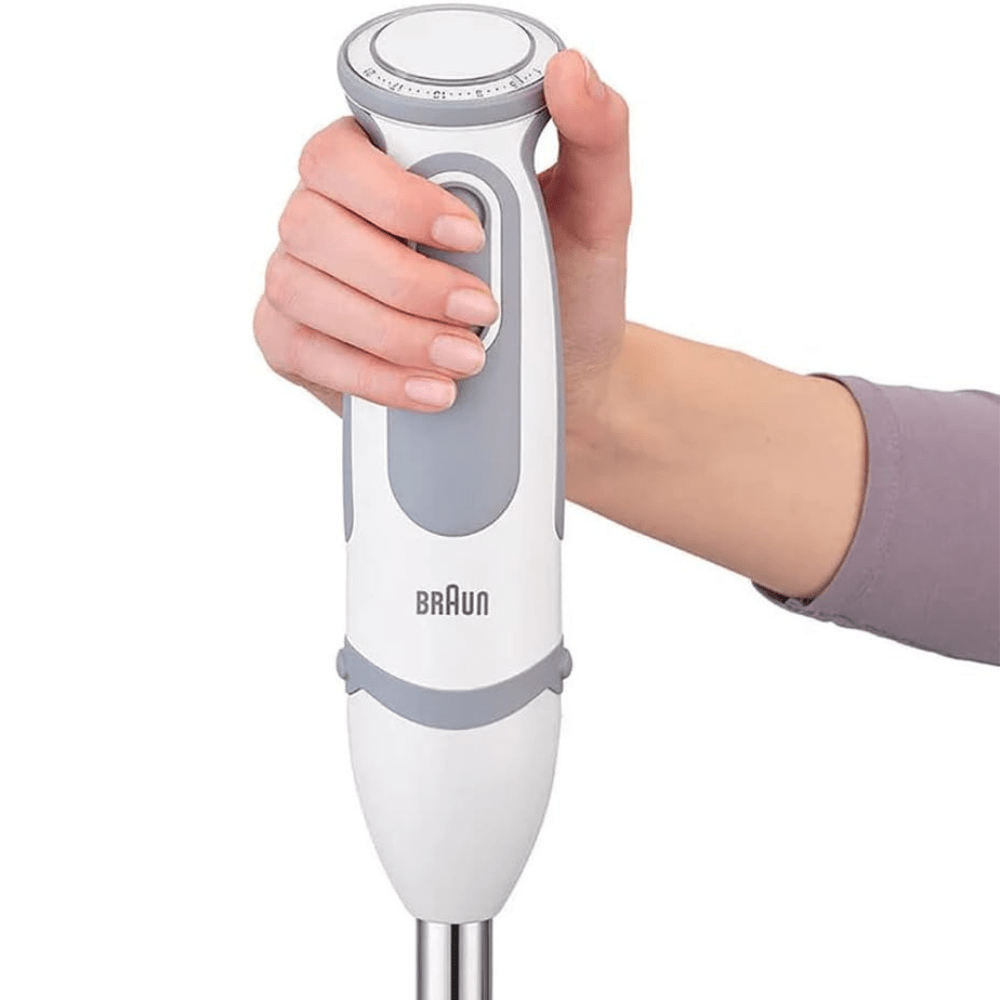 The Braun Household Multi Quick 5 Hand Blender MQ 5235 in White is a powerful and versatile kitchen companion designed to elevate your culinary experience. Equipped with a reliable 1000W motor, this hand blender guarantees silent and compact performance, ensuring reliability and delivering the fastest and finest food processing results.