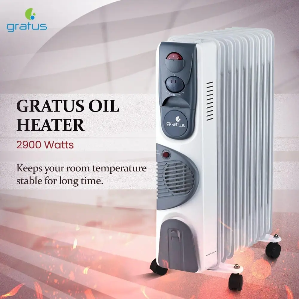 Experience a warm and cozy winter with the GRATUS 13 Fins Oil Heater – a reliable heating system that combines performance, efficiency, and affordability.