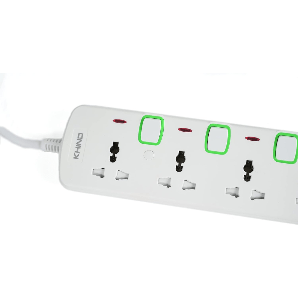 The KHIND Extension Socket 4 Outlets with Universal Plug is a reliable and durable solution for expanding power access in various settings. Engineered with a focus on safety, it incorporates fire-retardant plastic, ensuring an extra layer of protection. Its switches are both durable and reliable, guaranteeing prolonged use and dependability.