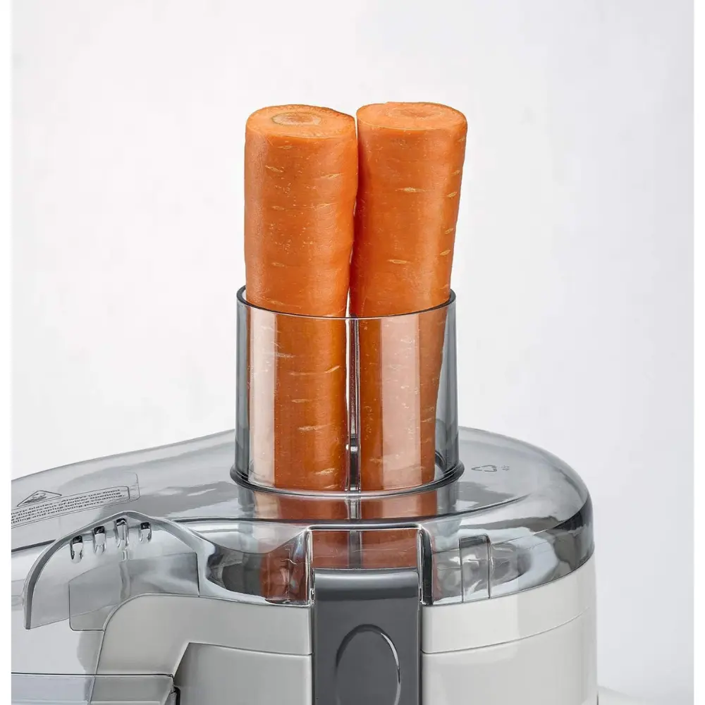 Equipped with 2-speed settings and a pulse control function, this juicer caters to a variety of ingredients, giving you the flexibility to create your desired juice consistency. Its 60mm feeding chute size is optimal for accommodating whole fruits and vegetables, reducing the need for pre-cutting and saving you time in preparation.