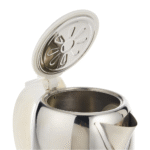 The Crownline KT-209 Cordless Kettle combines modern functionality with striking design elements in silver and orange. Crafted with a stainless steel body, this kettle presents a robust and stylish addition to your kitchen. With a maximum capacity of 1.8 liters, it offers ample hot water for various beverage preparations.