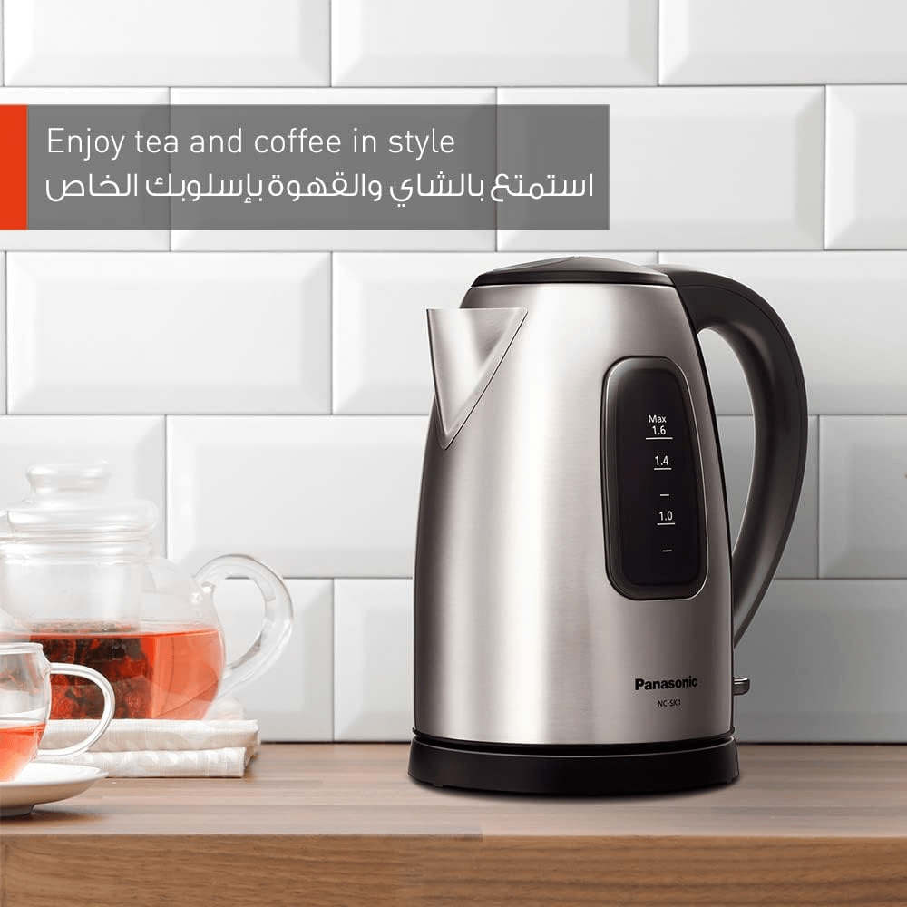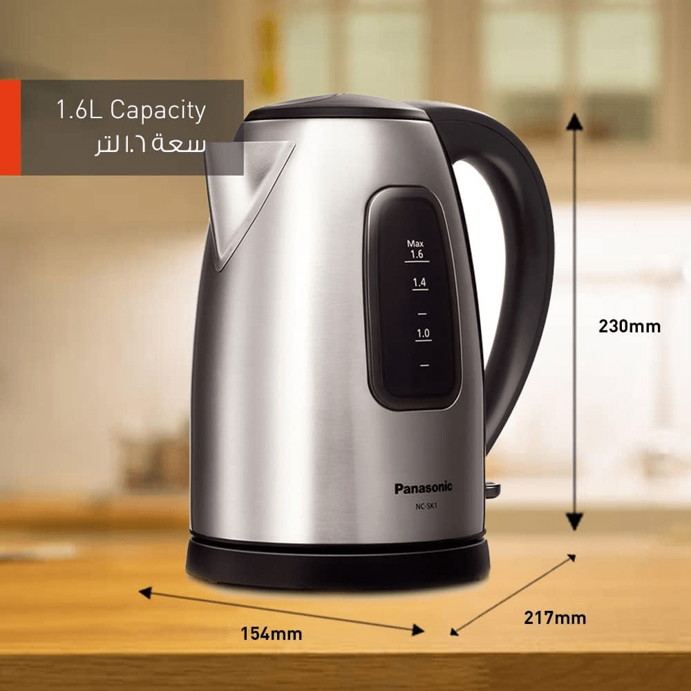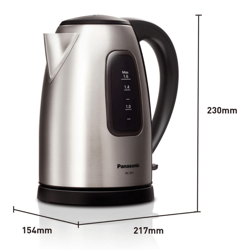 The Panasonic 1.7L Kettle (NCSK1) in stainless steel offers convenience and style for tea enthusiasts. With a 1.6-liter capacity, dual water windows, a push-button lid, and a sleek stainless steel body, this kettle ensures easy filling, precise measurements, and durability. Its detachable 360-degree pirouette base adds to the convenience, making tea time a breeze. Covered by a minimum 1-year manufacturer warranty for added assurance.