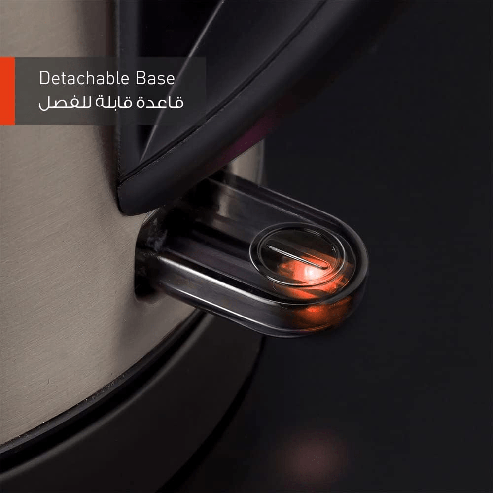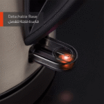 Enhancing its user-friendly design, the kettle incorporates a detachable 360-degree pirouette base, facilitating effortless handling. The cordless nature of the kettle, combined with the swiveling base, offers easy pouring and movement, providing a hassle-free tea-making experience.
