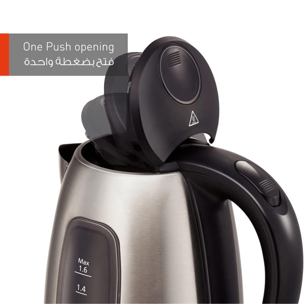 A single push-button lid opening mechanism simplifies the process of filling the kettle, ensuring convenience and ease of use. The sleek stainless steel body adds a touch of sophistication to your kitchen countertop while guaranteeing durability and longevity.