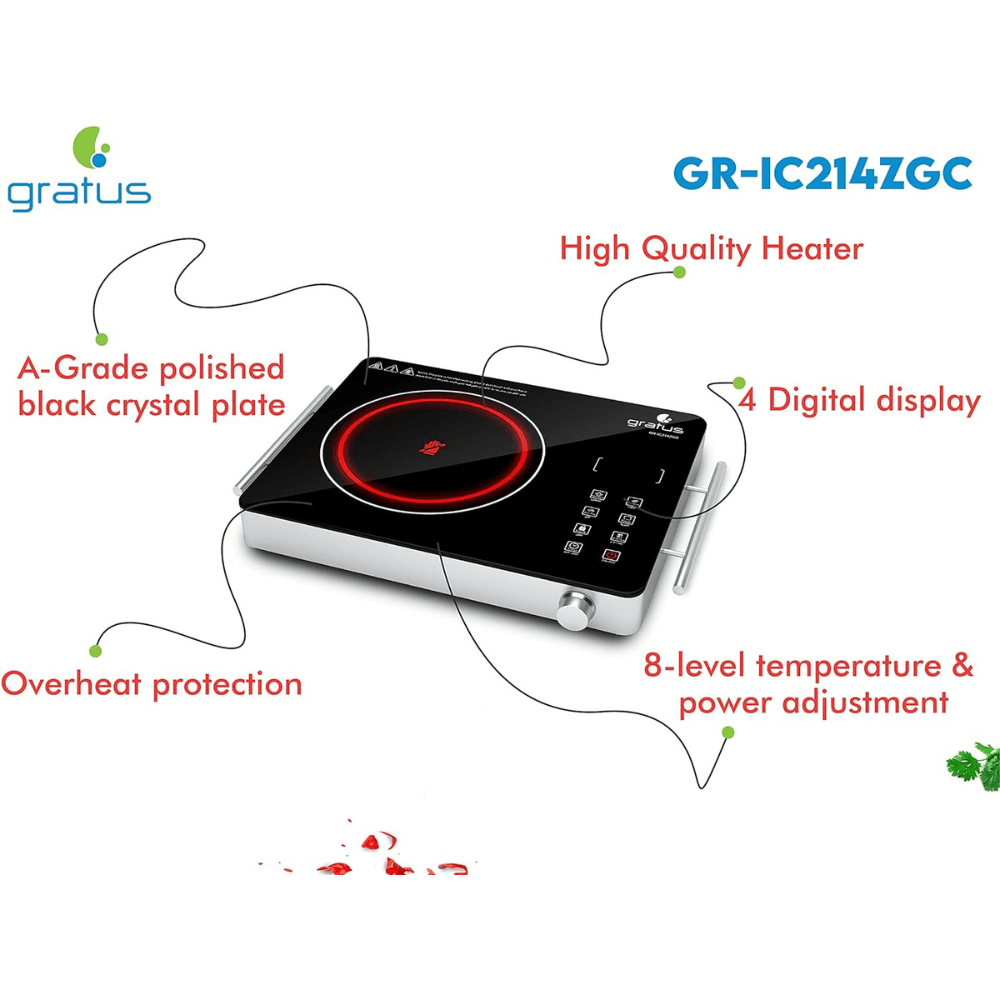 Gratus Infrared Cooker GR-IC214ZGC with Sensor Touch & Knob Controller, Digital Display, 1 year warranty (Suits all type of vessels)