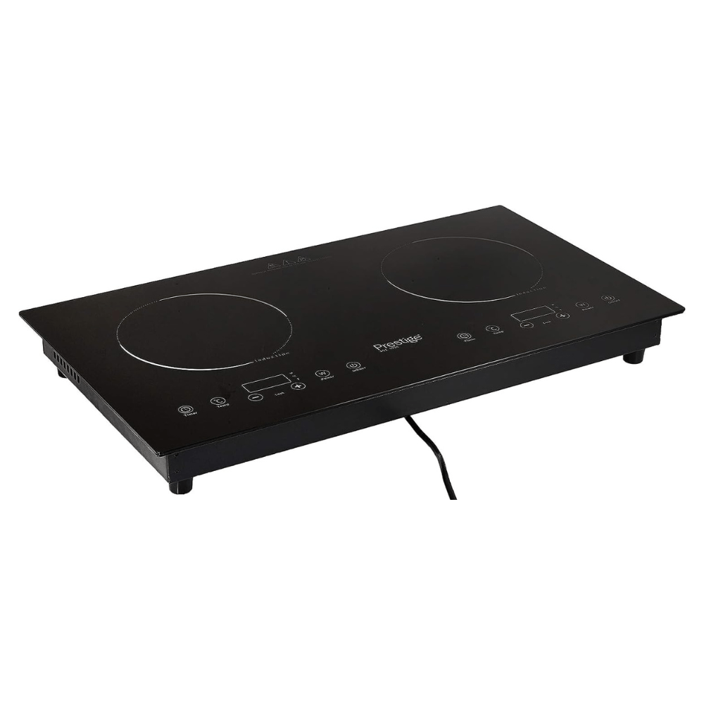 Prestige Double Induction Cooktop 3000 Watts, 8 Digital Temp Control Panel, Crystal Glass With Metal Base. 50 60 Hz PR50359, Black