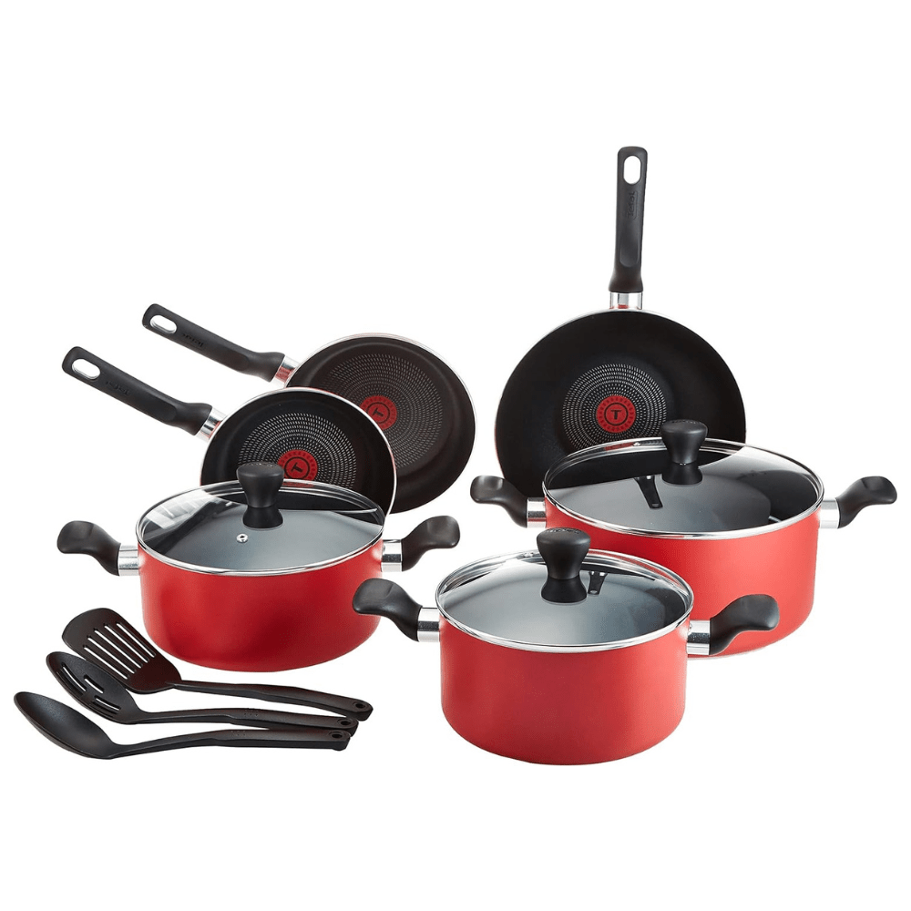 Tefal Super Cook Non-Stick With Thermo-Spot 12 Pcs Cooking Set, Red, Aluminum, B243Sc85