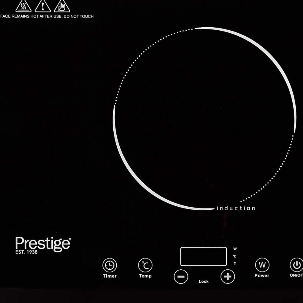 The Prestige Double Induction Cooktop in sleek black combines elegance with functionality. With two heating elements totaling 2800 Watts, this cooktop ensures efficient cooking. Its black crystal glass and sturdy metal base enhance durability, while the 8 digital temperature control panel and auto shut-off feature offer convenience and safety.