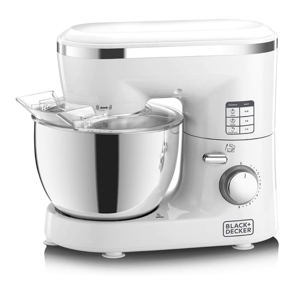 The BLACK+DECKER Kitchen Stand Mixer Machine is a powerful and versatile appliance with a 1000W motor, 4L stainless steel bowl, and 6-speed settings. Its compact design, easy-to-clean features, and generous capacity make it ideal for any kitchen. With up to 600 grams of dough mixing capacity and a 2-year warranty, this mixer is a durable and reliable choice for perfect baking results.