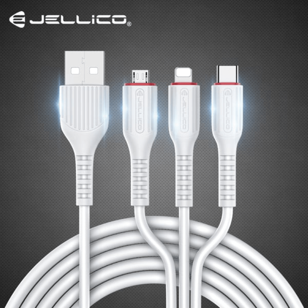 The Jellico MT13 Mata Super Charge 3-in-1 Data Cable is a high-quality, 1200cm cable offering 3.1A fast charging capabilities. Built with impressive bend resistance and high durability, this cable ensures reliable and efficient charging and data transfer, providing the versatility you need for your devices.