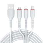 The Jellico MT13 Mata Super Charge 3-in-1 Data Cable redefines convenience and versatility in charging and data transfer. With a generous length of 1200cm, this cable offers unparalleled flexibility and reach, allowing you to charge and sync your devices from a distance. It’s not just about length; this cable is built for performance. The 3.1A fast charging capability ensures swift power delivery to your devices, keeping you connected at all times.