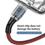 The cable features a robust construction with a 21AWG bronze tinned core, silver-plated connector, and reinforced 0.8mm thickness joints, ensuring durability and resistance to over 15,000 bends. It incorporates overvoltage protection, battery protection, and automatic chip recognition functions to safeguard devices from potential damage.