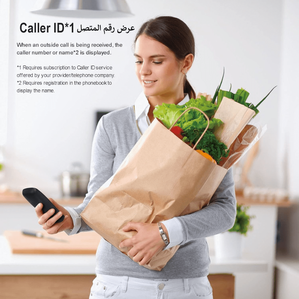 The 1.4-inch amber backlit LCD on the handset ensures clear visibility of caller information and menu settings, facilitating ease of use. With Caller ID functionality, this phone displays caller numbers or names, enabling users to identify incoming calls before answering.
