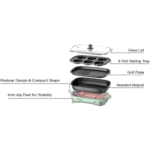 Its non-stick detachable pans guarantee a mess-free and effortless cleaning experience. The cool-touch body with anti-slip feet ensures operational stability, while the modular design and compact shape enable convenient storage, perfectly fitting smaller kitchen spaces.