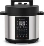 The Nutricook SMART POT 3 SP320-ON is a versatile 12-in-1 multi-functional cooker designed to make meal prep fast, easy, and safe. With a 6L capacity and 1200W of power, this all-in-one kitchen appliance serves as a pressure cooker, slow cooker, rice cooker, steamer, sauté pan, yogurt maker, soup maker, egg cooker, cake maker, and much more, covering all your cooking needs in one sleek device. Enjoy 17 one-touch settings for your favorite dishes, plus 3 customizable Favorite buttons for added convenience. The smart lid seals automatically and releases pressure with a single touch for safety and ease of use. The LCD display allows you to monitor your cooking progress at a glance, while the food-grade stainless steel 304 inner pot ensures durability and easy cleanup. Built with multiple safety features, including pressure limit protection, overheating protection, and a safety lid lock, the SMART POT ensures worry-free cooking. The cooker also comes with a steam rack, measuring cup, extra sealing ring, and extra float valve. Plus, it’s dishwasher-safe for quick cleaning. Enjoy peace of mind with a 2-year warranty and experience the power of Nutricook SMART POT 3.