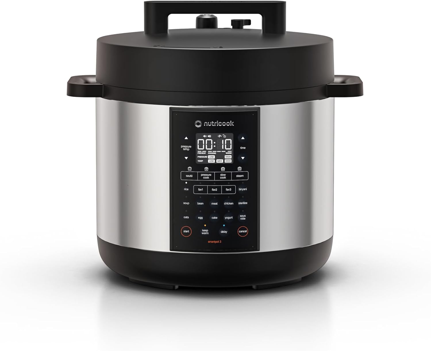 Nutricook SMART POT, 8L Capacity,1500W, 12-in-1 Multi-Cooker,Pressure Cooker, Slow Cooker, Rice Cooker & More, One-Touch LCD Display, Dishwasher-Safe, Stainless Steel Pot SP330-ON, 2-Year Warranty