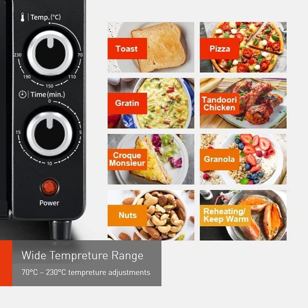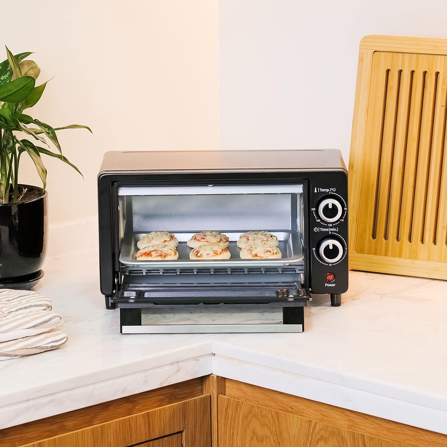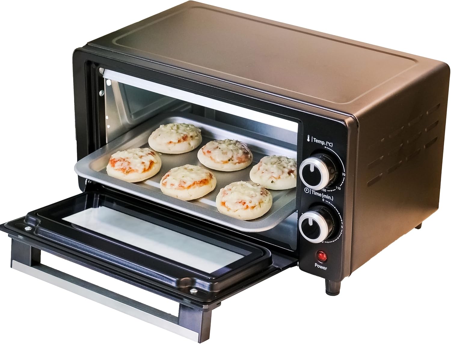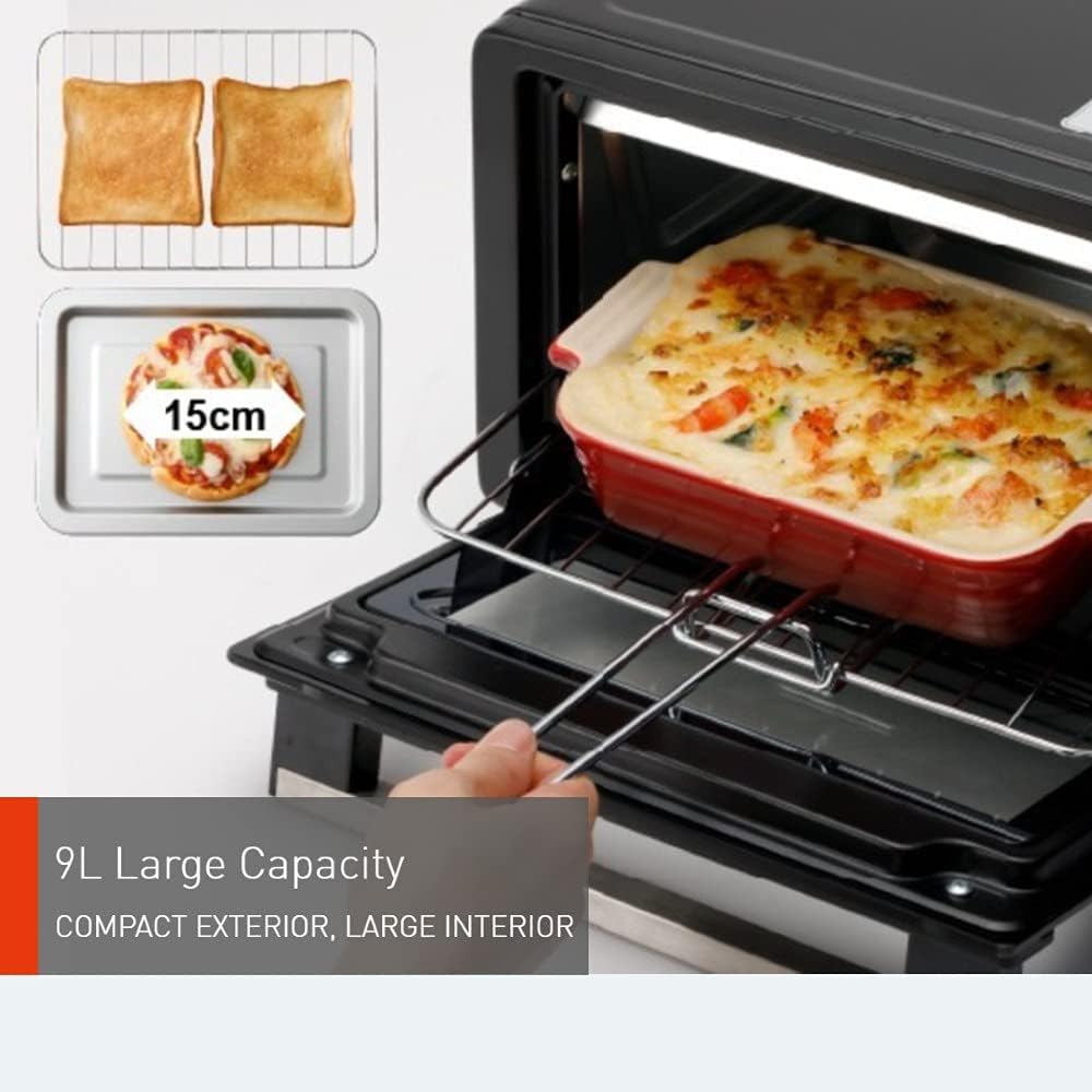 The 9L capacity is ideal for quick cooking during busy mornings,where you can bake a whole pizza or toast 2 slices of bread at one time.