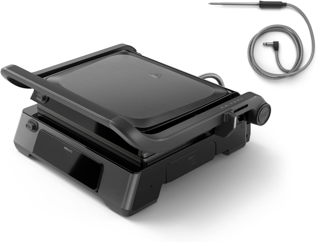 Philips 7000 Series Contact Grill- 2200W,Opens 180° for countertop grilling,Temperature probe,Adjustable removable plates,Precision digital control,8 preset functions ,adjustable height,large grill surface,handle lock,Removable drip tray,2year warranty- HD6307/70