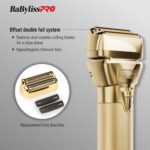 The FXONE GOLDFX Double Foil Shaver has a new N1 brushless motor which uses dual ball bearings for more efficiency. It features an interchageable lithium battery pack with a quick release button and up to 3 hours of run time.