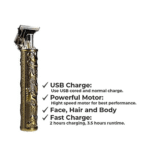 The GEEMY GM-6627 Rechargeable Hair Trimmer combines compact construction with unparalleled performance, offering a seamlessly functional and designed-to-perfection grooming solution. With its portable and rechargeable features, achieve precision in hair trimming with ease.