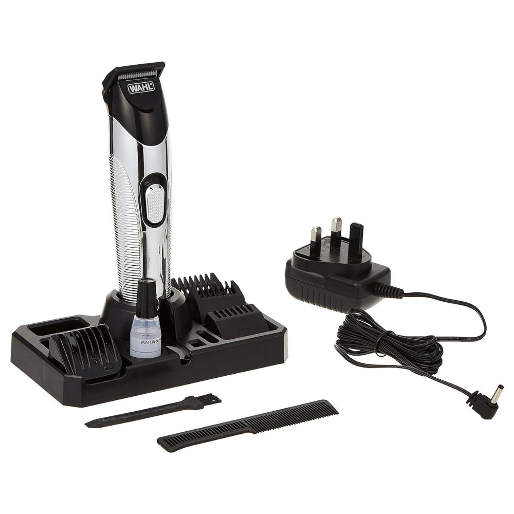 Wahl Silver Trim Cord/Cordless Trimmer, Rechargeable Beard Trimmer, Precision Cutting, Bonus Accessory Stand, Silver, 09891-027