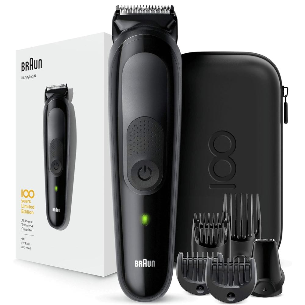Braun Multi Grooming Kit MBMGK5, 100 Years Design Edition, 6-in-1 Men’s Trimmer kit including short and long combs, hair clippers and precision trimmer