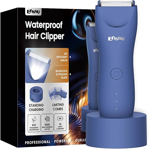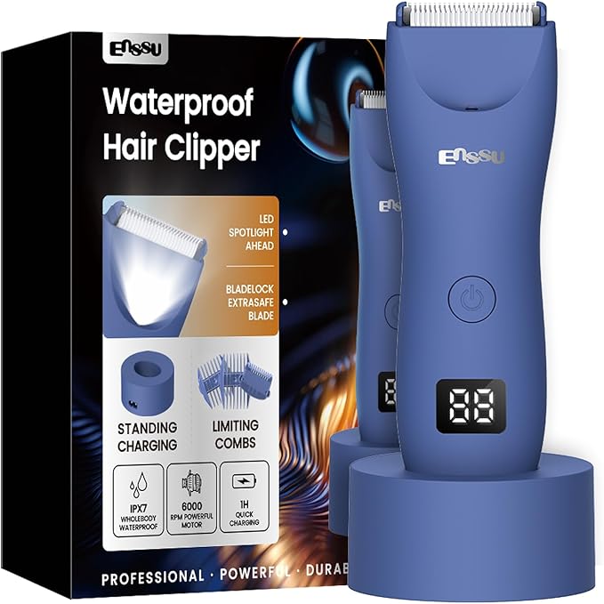 ENSSU Body Hair Trimmer for Men, Manscape Waterproof Pubic & Groin Hair Trimmer with Skin-Safe Ceramic Blade, Electric Ball Trimmer for Chest & Beard, LCD Display, Recharge Dock