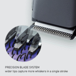 Featuring an advanced blade design, this trimmer captures more whiskers in a single pass. Its high-performance motor easily handles dense and thick hair, ensuring a snag-free and comfortable cutting experience.