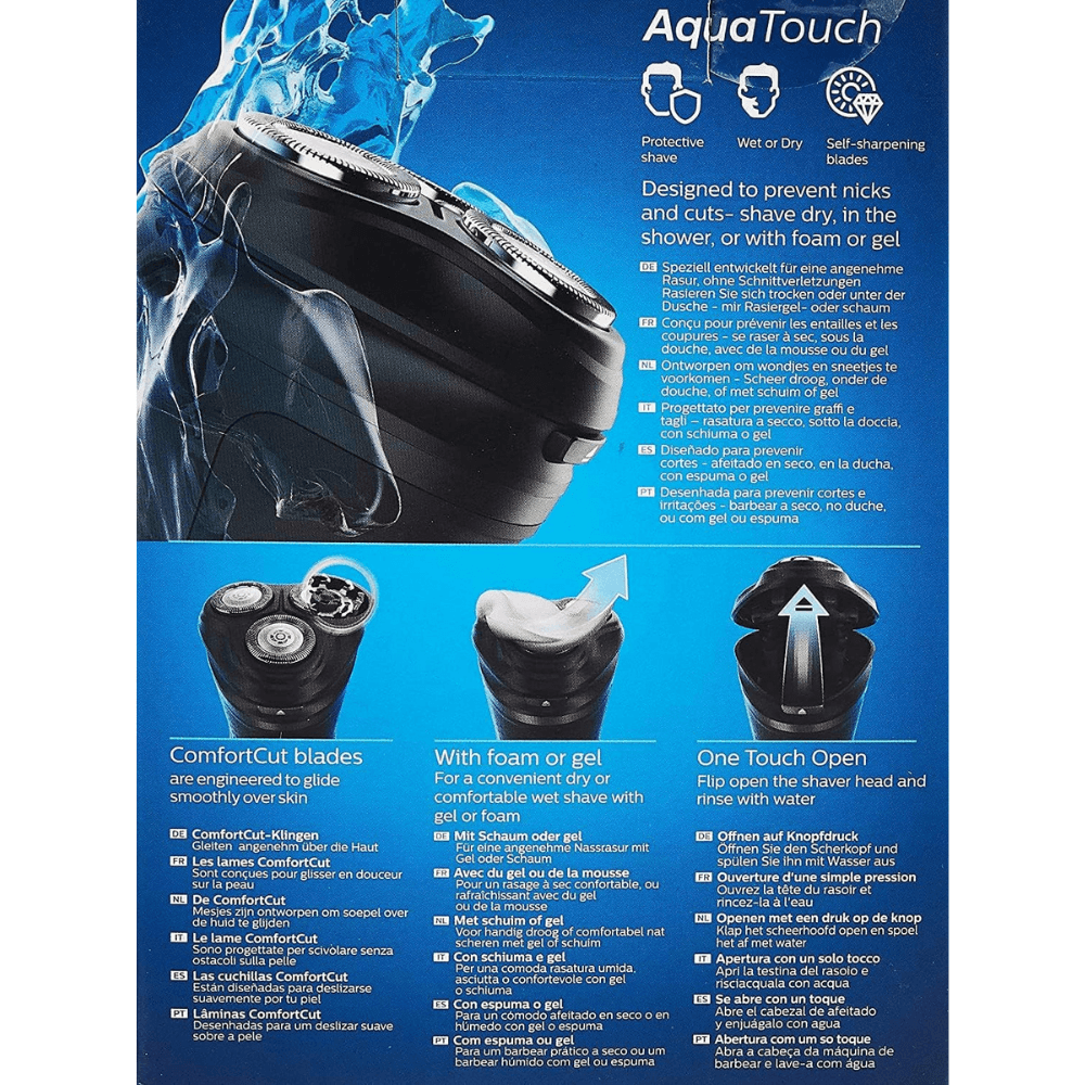 Equipped with Aquatec technology, this shaver allows for a refreshing wet shave or a quick and convenient dry shave, giving you the flexibility to choose based on your preferences. The One-Touch Open feature simplifies cleaning, ensuring easy maintenance after each use.