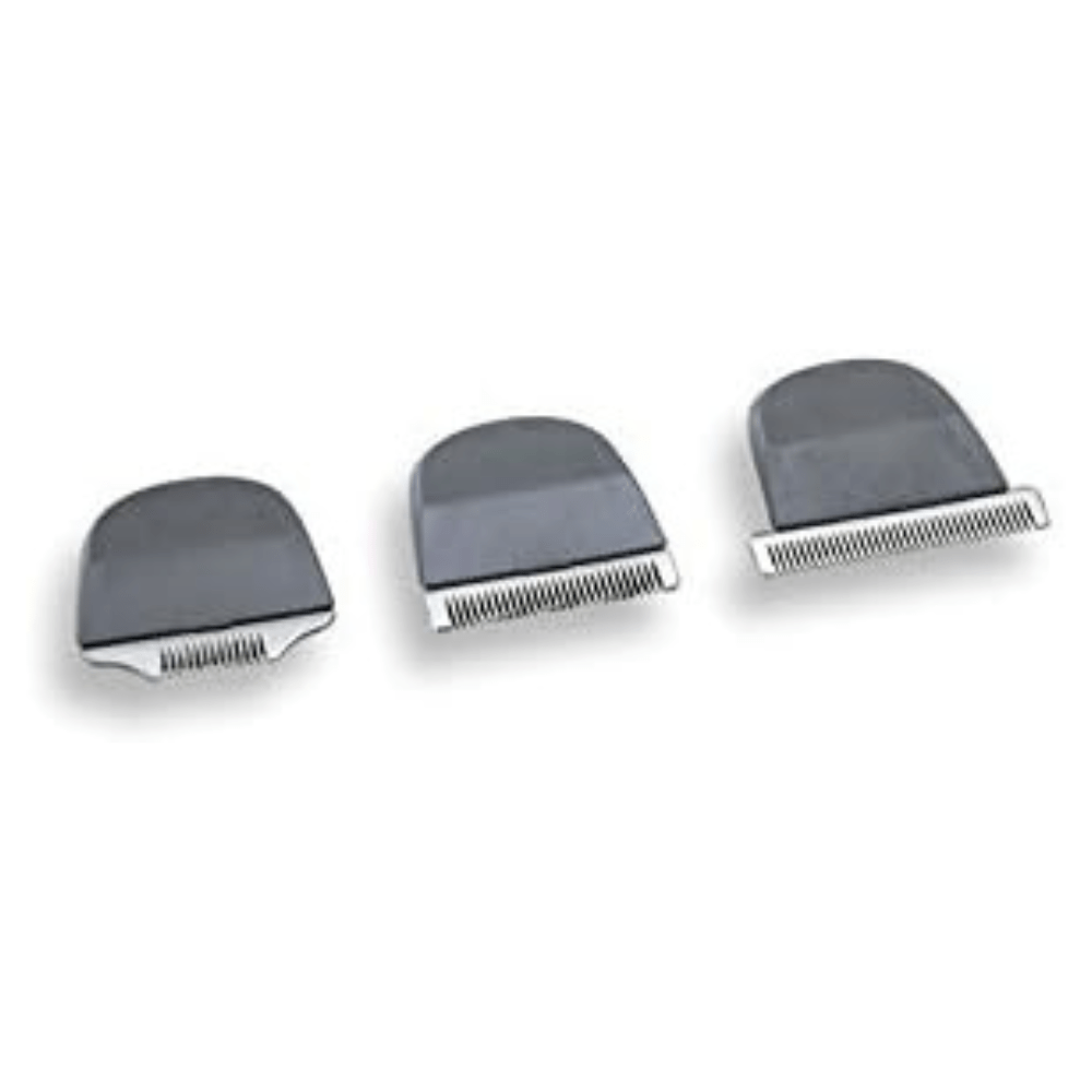 Included with the clipper is a comprehensive professional accessories set, featuring 3 interchangeable blade sets and 5 attachment combs for each of the 40mm and 32mm blades, providing cutting lengths of 1.5mm, 3mm, 6mm, 10mm, and 12.8mm. Additionally, the set contains a thinning comb, charging base, adaptor, scissors, and a barber comb, offering a complete grooming solution.