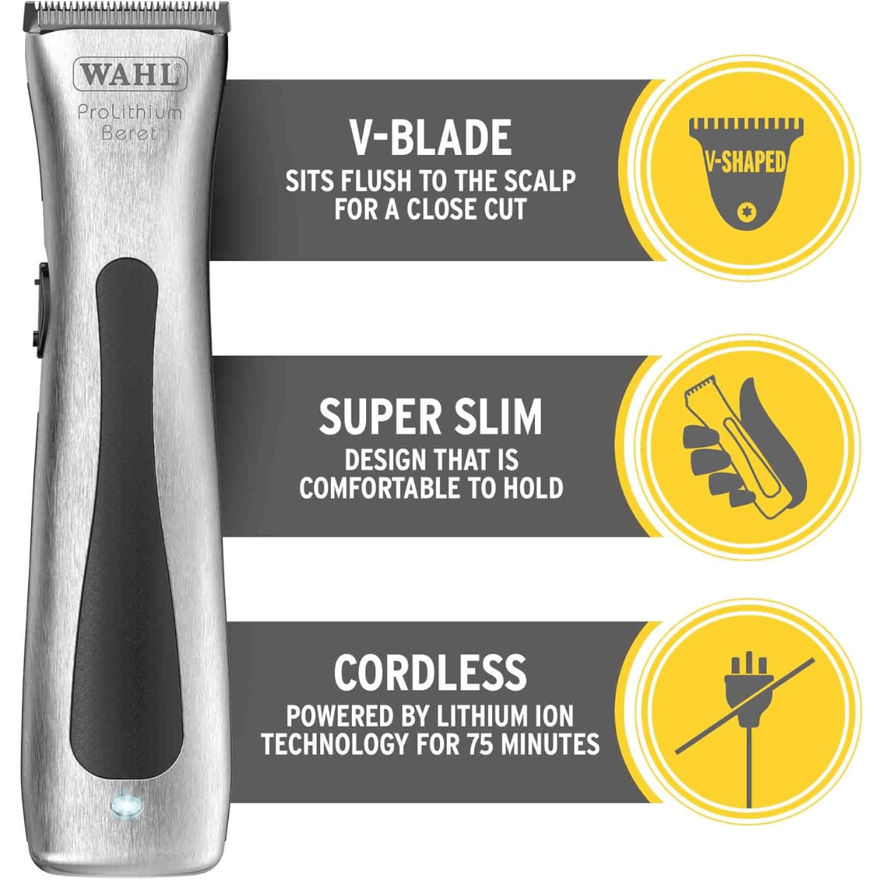 The Wahl Beretto Cordless Clipper is a professional-grade grooming tool that caters to your every need. Whether you’re a professional barber in a busy shop or an individual dedicated to looking your best, this clipper combines power, convenience, and versatility to help you achieve the perfect style every time. With advanced Lithium Ion battery technology and quick charge options, it’s a reliable companion for your grooming journey.