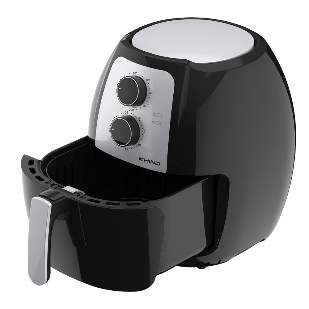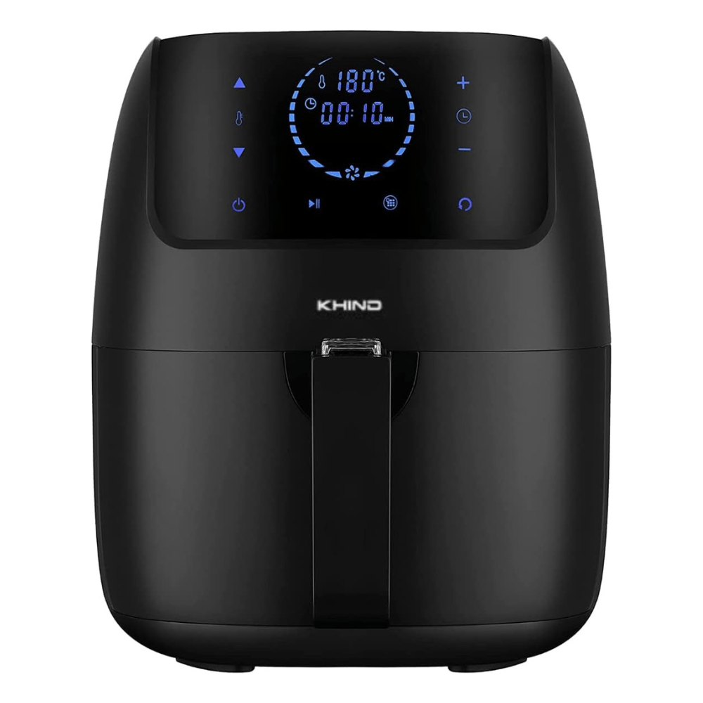 KHIND Air Fryer ARF3000, Digital Display with Touch Control, 3.5L Net Capacity, 8 Preset Menus, Variable Temperature and Timer, Food SS Grill, Low Fat Cooking- Black